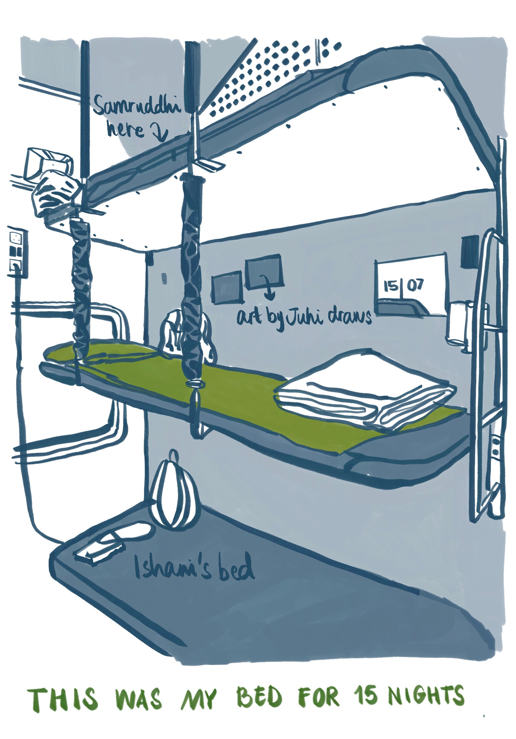 That’s it folks. I can go on and on about this journey, but maybe some other time. Till then, let me share a drawing of my bed for these 15 days.